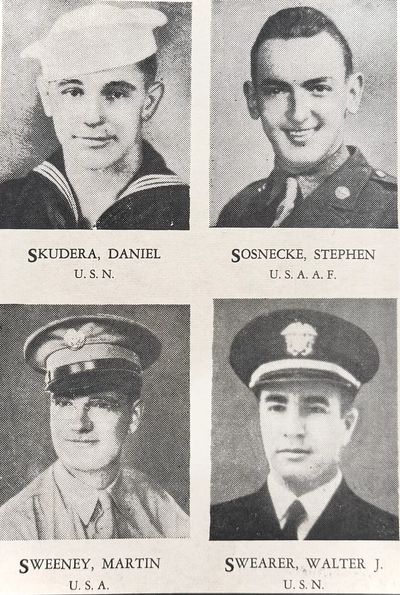 Walter J. Swearer - Lieutenant, US Navy. Was killed on October 26, 1942 aboard the Aircraft Carrier USS Enterprise during the battle of the Solomons.